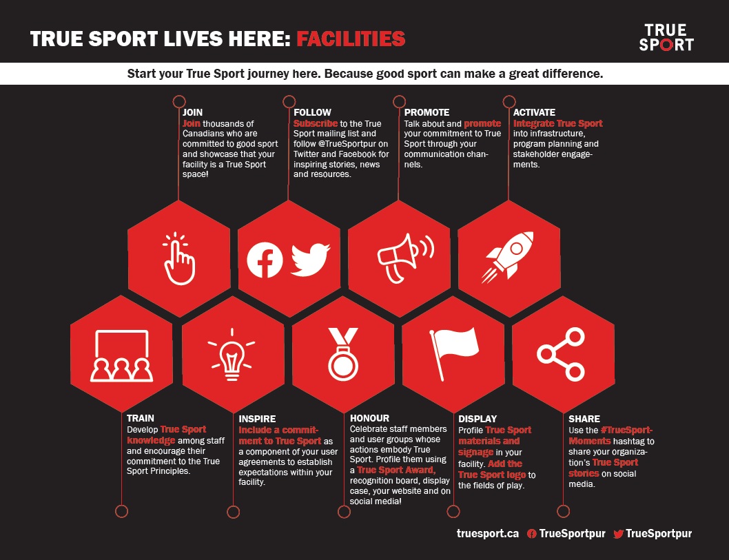 It’s not as obvious how facilities can activate True Sport. The national organization has put together the following infographic for some quick ways facilities can begin their True Sport journey: